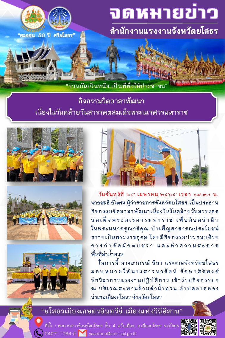 สรจ.ยโสธร ร่วมกิจกรรมจิตอาสาพัฒนาเนื่องในวันคล้ายวันสวรรคตสมเด็จพระนเรศวรมหาราช