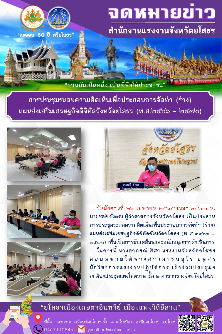 สรจ.ยโสธร ร่วมประชุมระดมความคิดเห็นเพื่อประกอบการจัดทำ (ร่าง) แผนส่งเสริมเศรษฐกิจดิจิทัลจังหวัดยโสธร (พ.ศ.2566-2570)