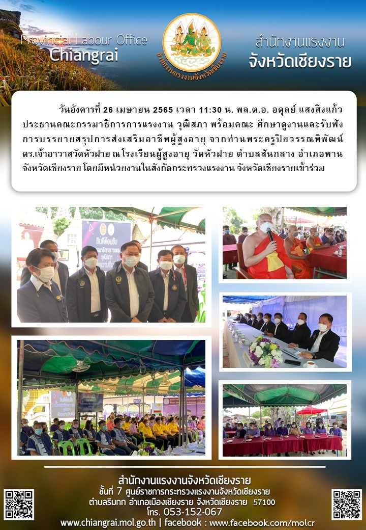 พลตำรวจเอก อดุลย์ แสงสิงแก้ว ประธานคณะกรรมาธิการการแรงงาน วุฒิสภา พร้อมคณะ ศึกษาดูงานและรับฟังการบรรยายสรุปการส่งเสริมอาชีพผู้สูงอายุ จากท่านพระครูปิยวรรณพิพัฒน์ ดร.เจ้าอาวาสวัดหัวฝายฯ