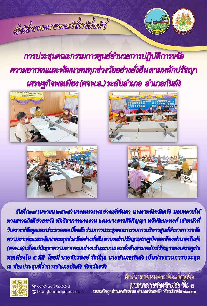 สรจ.ตรัง ร่วมการประชุมคณะกรรมการบริหารศูนย์อำนวยการขจัดความยากจนและพัฒนาคนทุกช่วงวัยอย่างยั่งยืน ตามหลักปรัชญาเศรษฐกิจพอเพียงอำเภอกันตัง (ศจพ.อ)