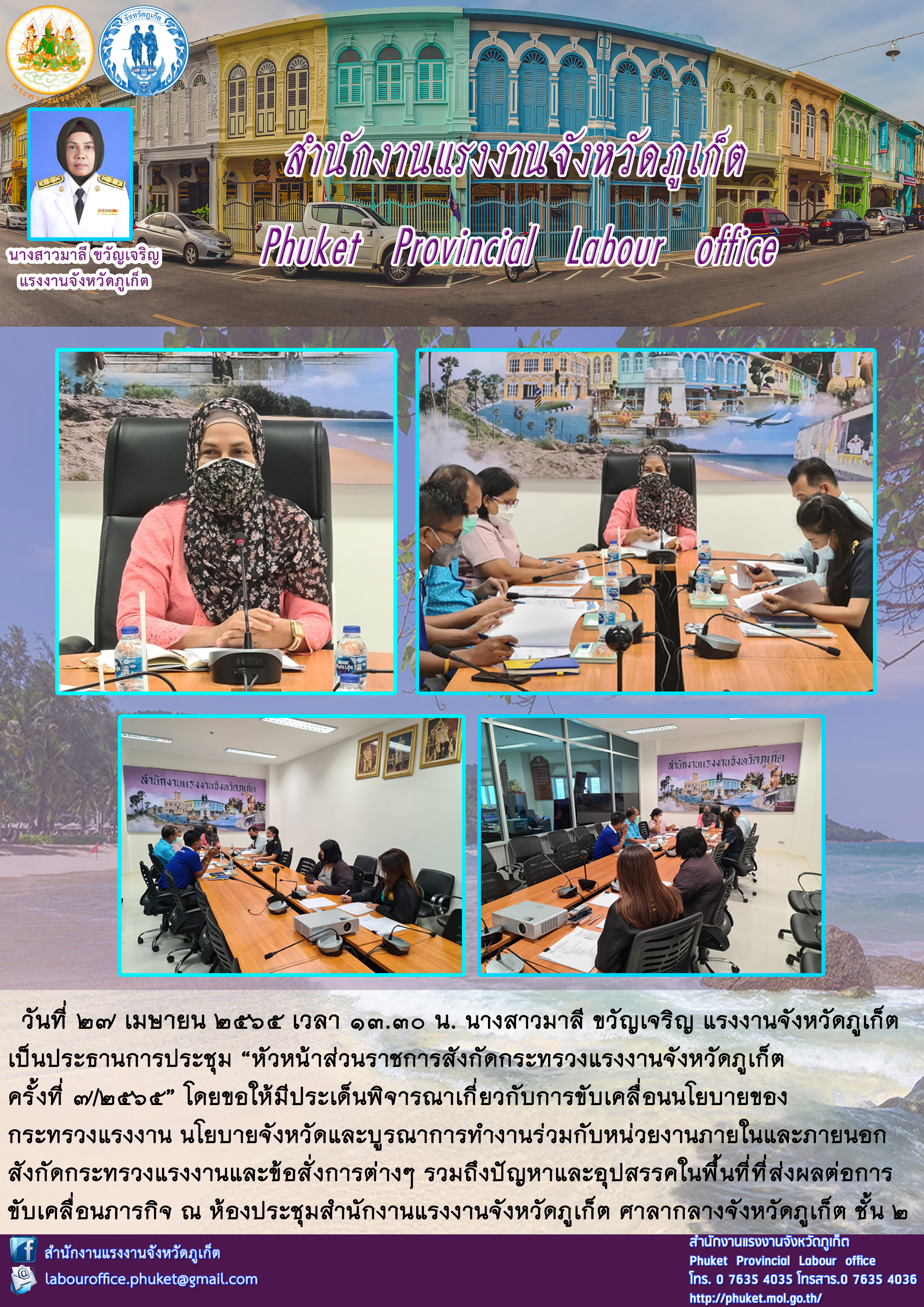 แรงงานจังหวัดภูเก็ต เป็นประธานการประชุม “หัวหน้าส่วนราชการสังกัดกระทรวงแรงงานจังหวัดภูเก็ต ครั้งที่ 7/2565”