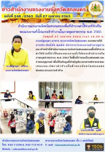 สำนักงานแรงงานจังหวัดสกลนคร ลงพื้นที่สำรวจค่าใช้จ่ายที่จำเป็นของแรงงานทั่วไปแรกเข้าทำงานในภาคอุตสาหกรรม พ.ศ. 2565