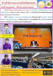 สำนักงานแรงงานจังหวัดสกลนคร ร่วมประชุมขับเคลื่อนจังหวัดที่มีผลสัมฤทธิ์สูง (High Performance Provinces)