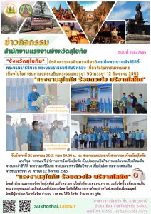 จังหวัดสุโขทัยจัดกิจกรรมเฉลิมพระเกียรติสมเด็จพระนางเจ้าสิริกิติ์ พระบรมราชินีนาถ พระบรมราชชนนีพันปีหลวง เนื่องในโอกาสมหามงคล เนื่องในโอกาสมหามงคลเฉลิมพระชนมพรรษา 90 พรรษา 12 สิงหาคม 2565 “แรงงานสุโขทัย ร้อยดวงใจ บริจาคโลหิต”