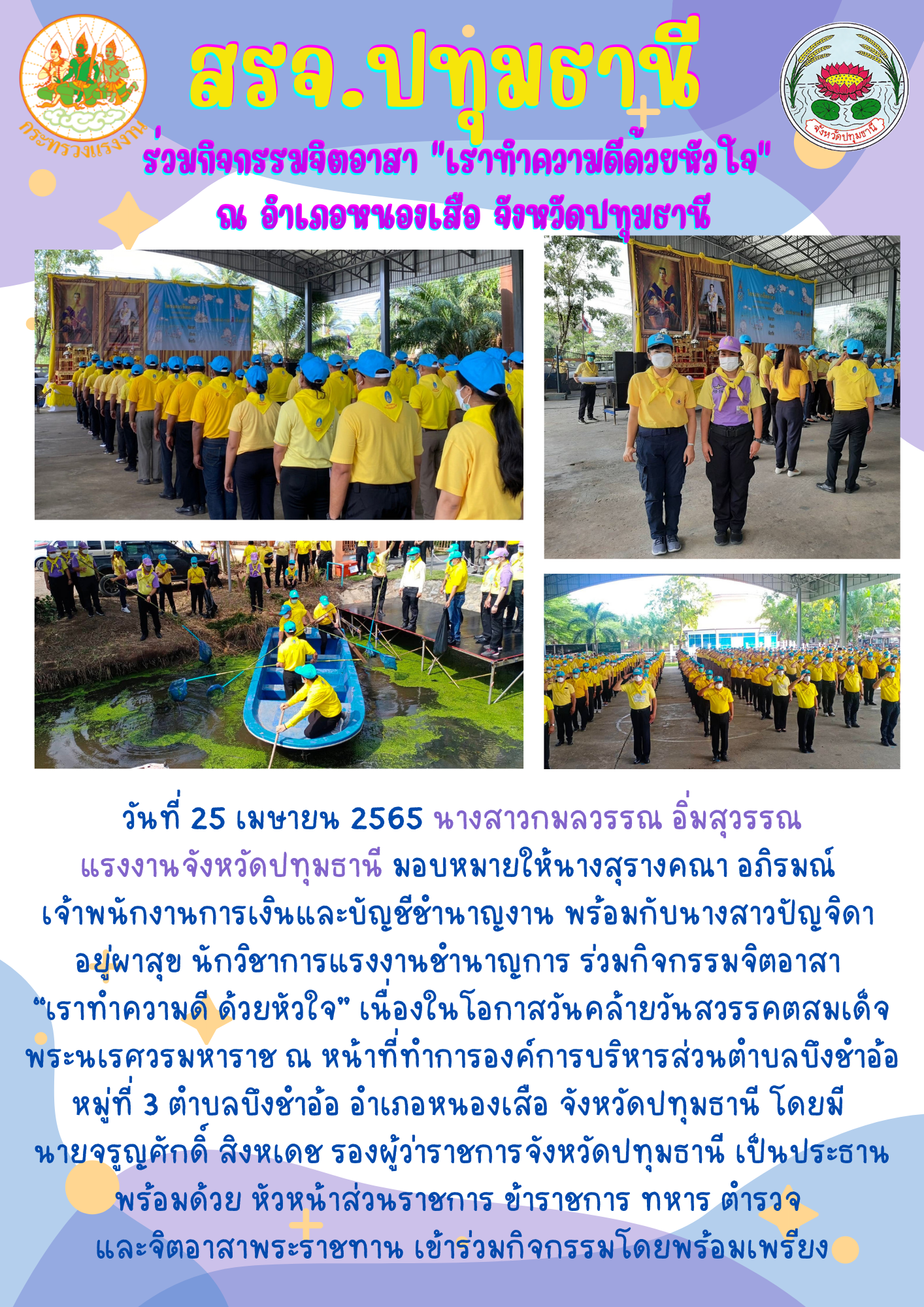 สรจ.ปทุมธานี ร่วมกิจกรรมจิตอาสา “เราทำความดี ด้วยหัวใจ” เนื่องในโอกาสวันคล้ายวันสวรรคตสมเด็จพระนเรศวรมหาราช ณ อ.หนองเสือ จ.ปทุมธานี