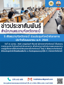 5 เสือแรงงานจังหวัดกระบี่ ร่วมประชุมหัวหน้าส่วนราชการประจำเดือนเมษายน พ.ศ. 2565