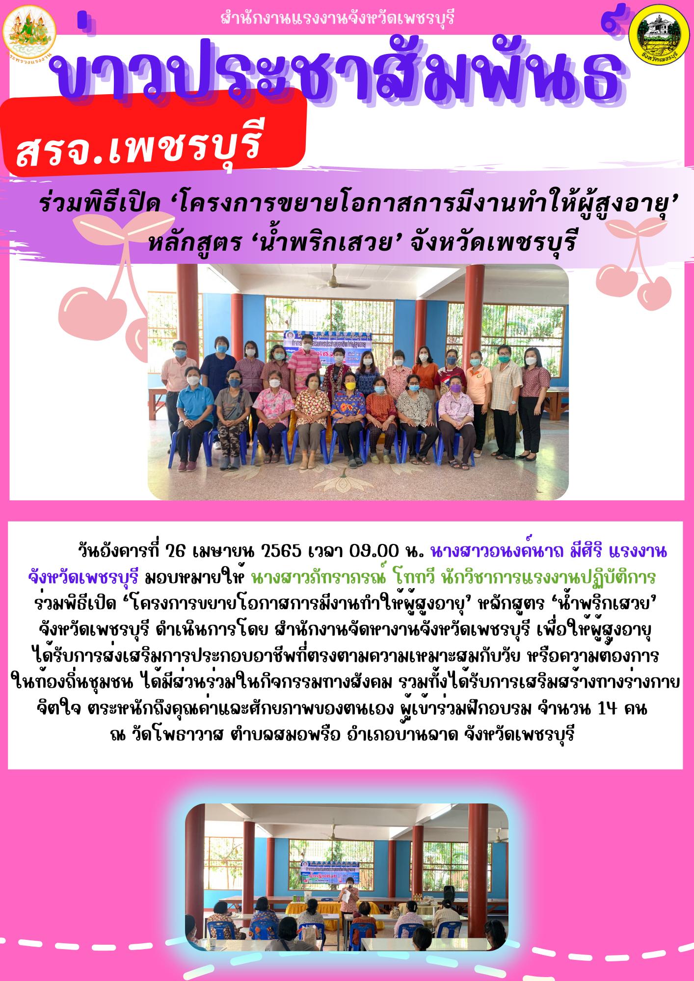 ‘สรจ.เพชรบุรี’ ร่วมพิธีเปิด ‘โครงการขยายโอกาสการมีงานทำให้ผู้สูงอายุ’ หลักสูตร ‘น้ำพริกเสวย’ จังหวัดเพชรบุรี