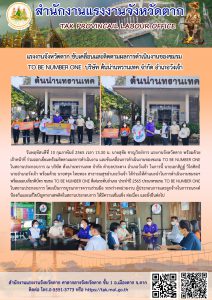 แรงงานจังหวัดตาก ขับเคลื่อนและติดตามผลการดำเนินงานของชมรม TO BE NUMBER ONE บริษัท ต้นน่านทรานเทค จำกัด อำเภอวังเจ้า