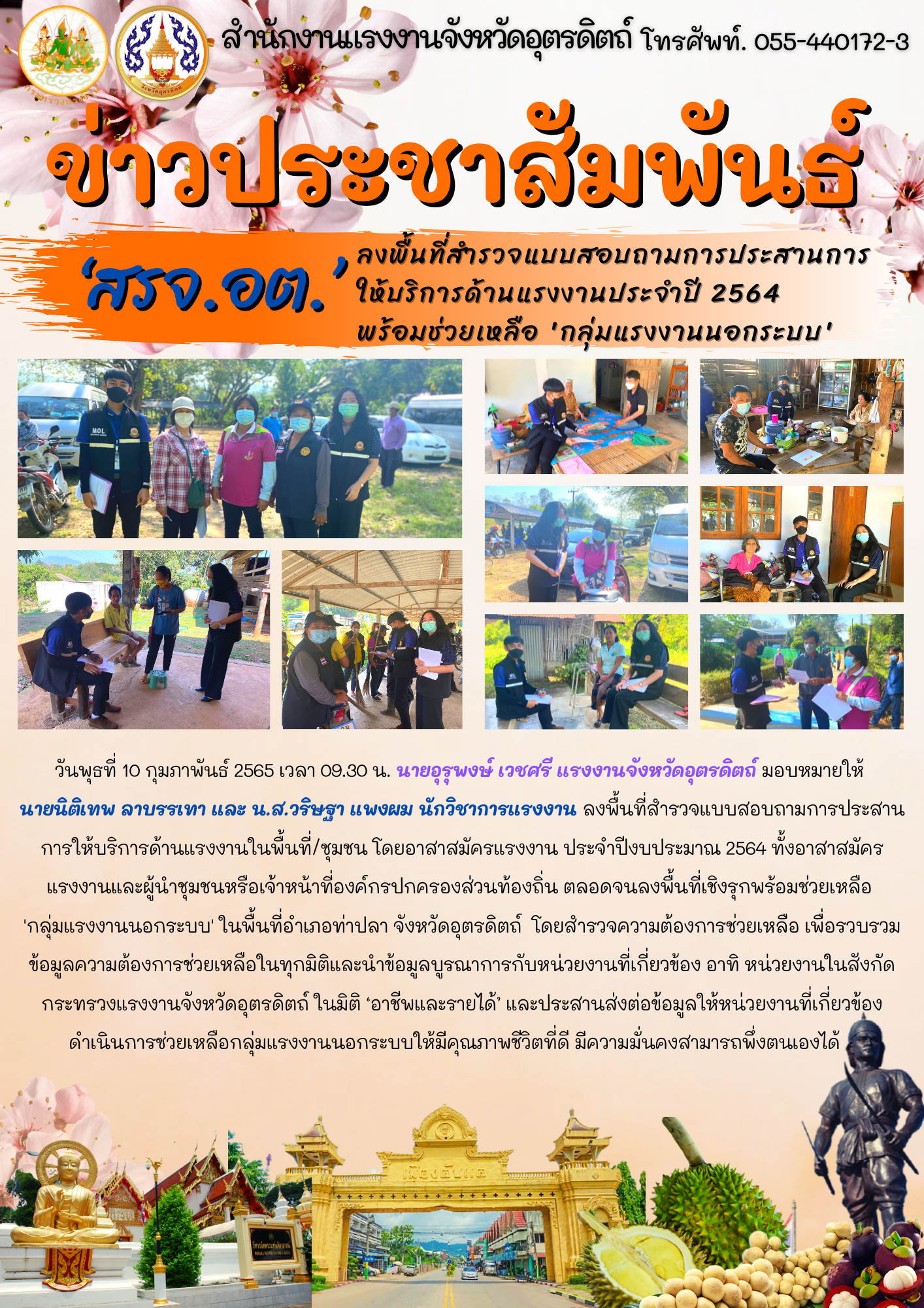 ‘สรจ.อต.’ ลงพื้นที่สำรวจแบบสอบถามการประสานการ ให้บริการด้านแรงงานประจำปี 2564 พร้อมช่วยเหลือ ‘กลุ่มแรงงานนอกระบบ’