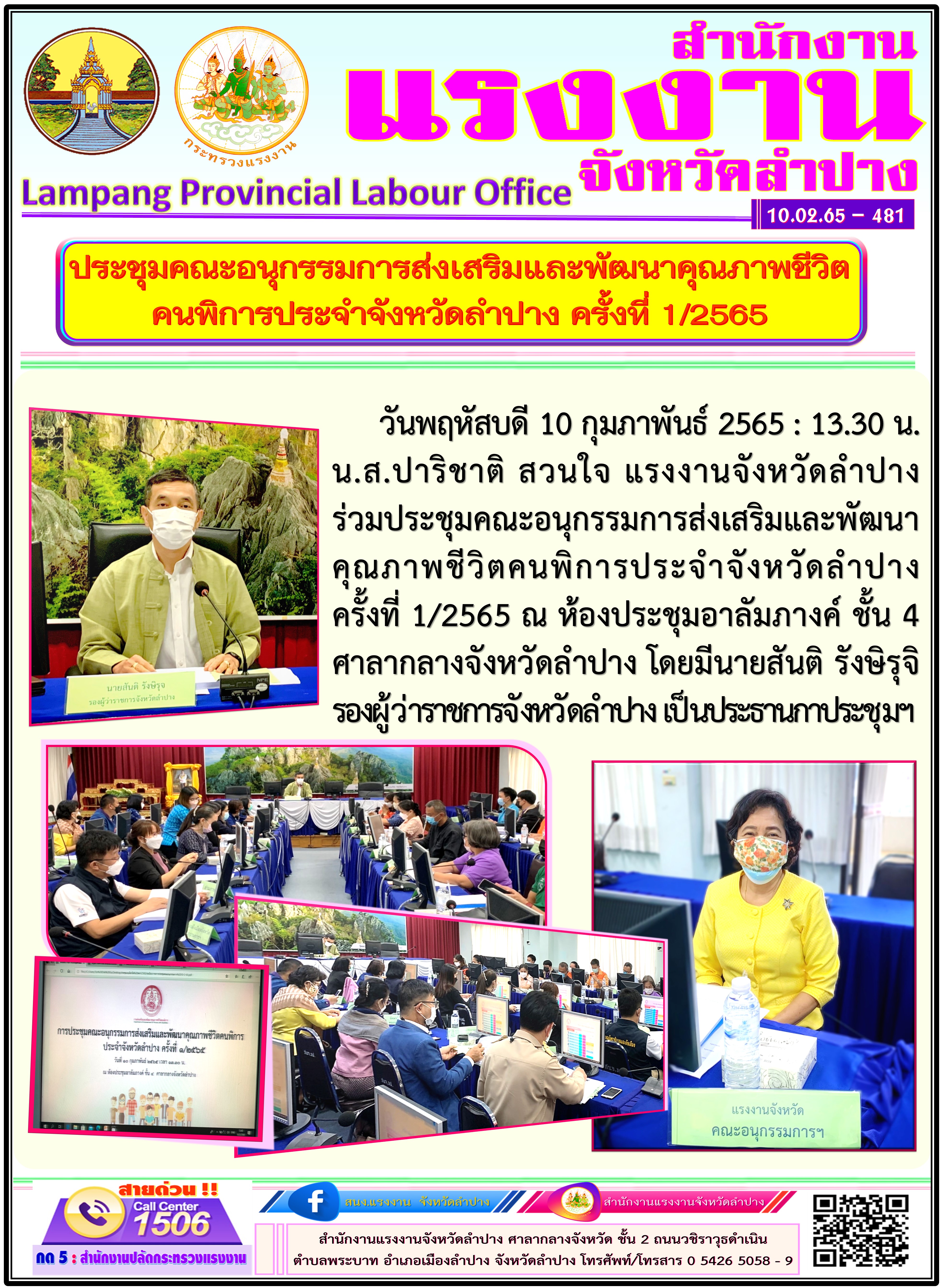 สรจ.ลำปาง ร่วมประชุมคณะอนุกรรมการส่งเสริมและพัฒนาคุณภาพชีวิตคนพิการประจำจังหวัดลำปาง ครั้งที่ 1/2565
