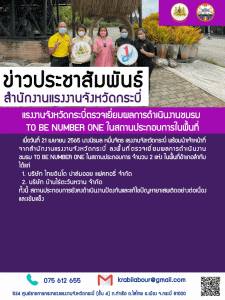 แรงงานจังหวัดกระบี่ตรวจเยี่ยมผลการดำเนินงานชมรม TO BE NUMBER ONE ในสถานประกอบการในพื้นที่