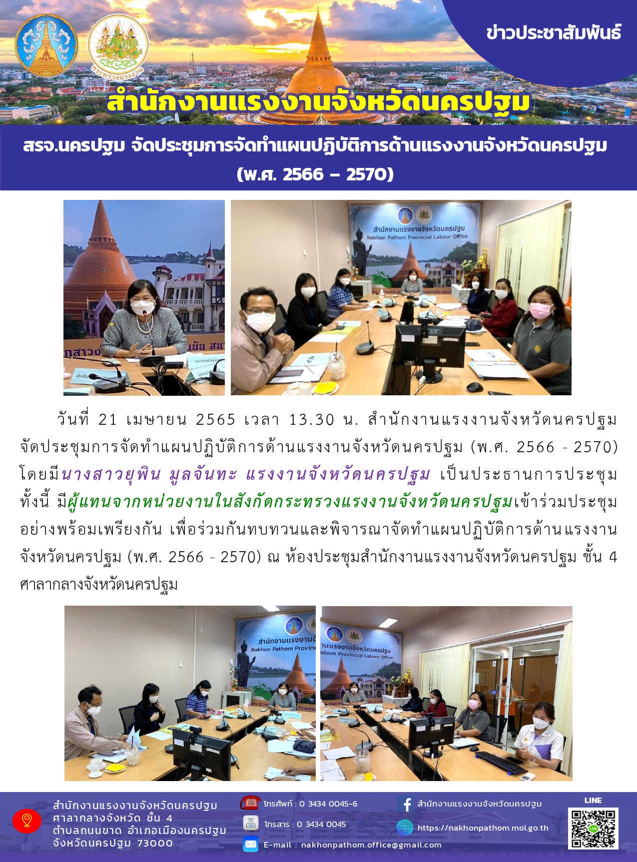 สรจ.นครปฐม จัดประชุมการจัดทำแผนปฏิบัติการด้านแรงงานจังหวัดนครปฐม (พ.ศ. 2566 – 2570)