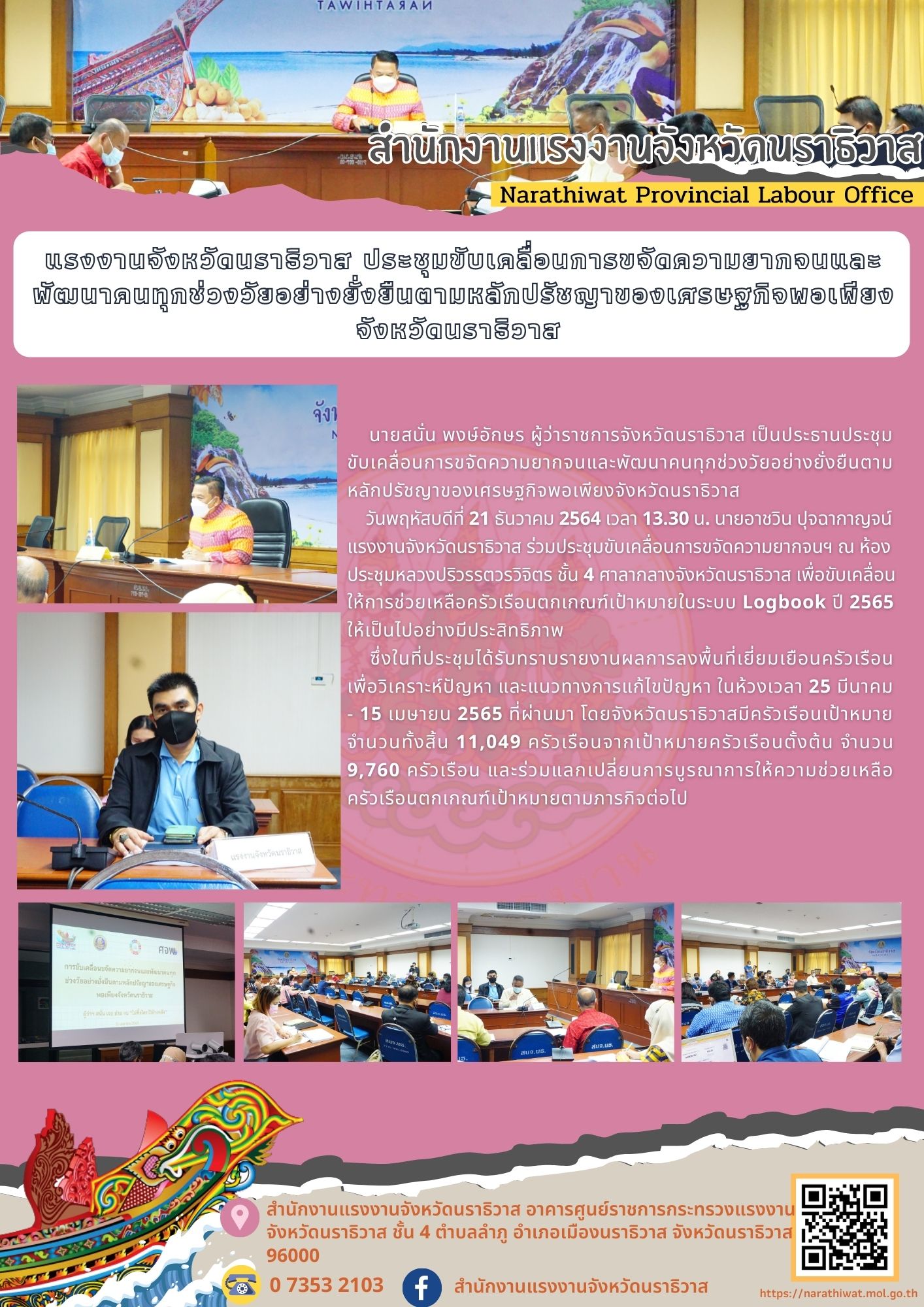 แรงงานจังหวัดนราธิวาส ประชุมขับเคลื่อนการขจัดความยากจนและพัฒนาคนทุกช่วงวัยอย่างยั่งยืนตามหลักปรัชญาของเศรษฐกิจพอเพียงจังหวัดนราธิวาส