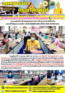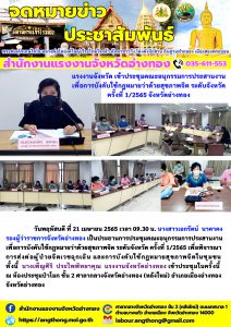 แรงงานจังหวัด เข้าประชุมคณะอนุกรรมการประสานงาน เพื่อการบังคับใช้กฎหมายว่าด้วยสุขภาพจิต ระดับจังหวัด ครั้งที่ 1/2565 จังหวัดอ่างทอง