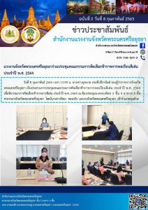 แรงงานจังหวัดพระนครศรีอยุธยาร่วมประชุมคณะกรรมการคัดเลือกข้าราชการพลเรือนดีเด่นประจำปี พ.ศ. 2564