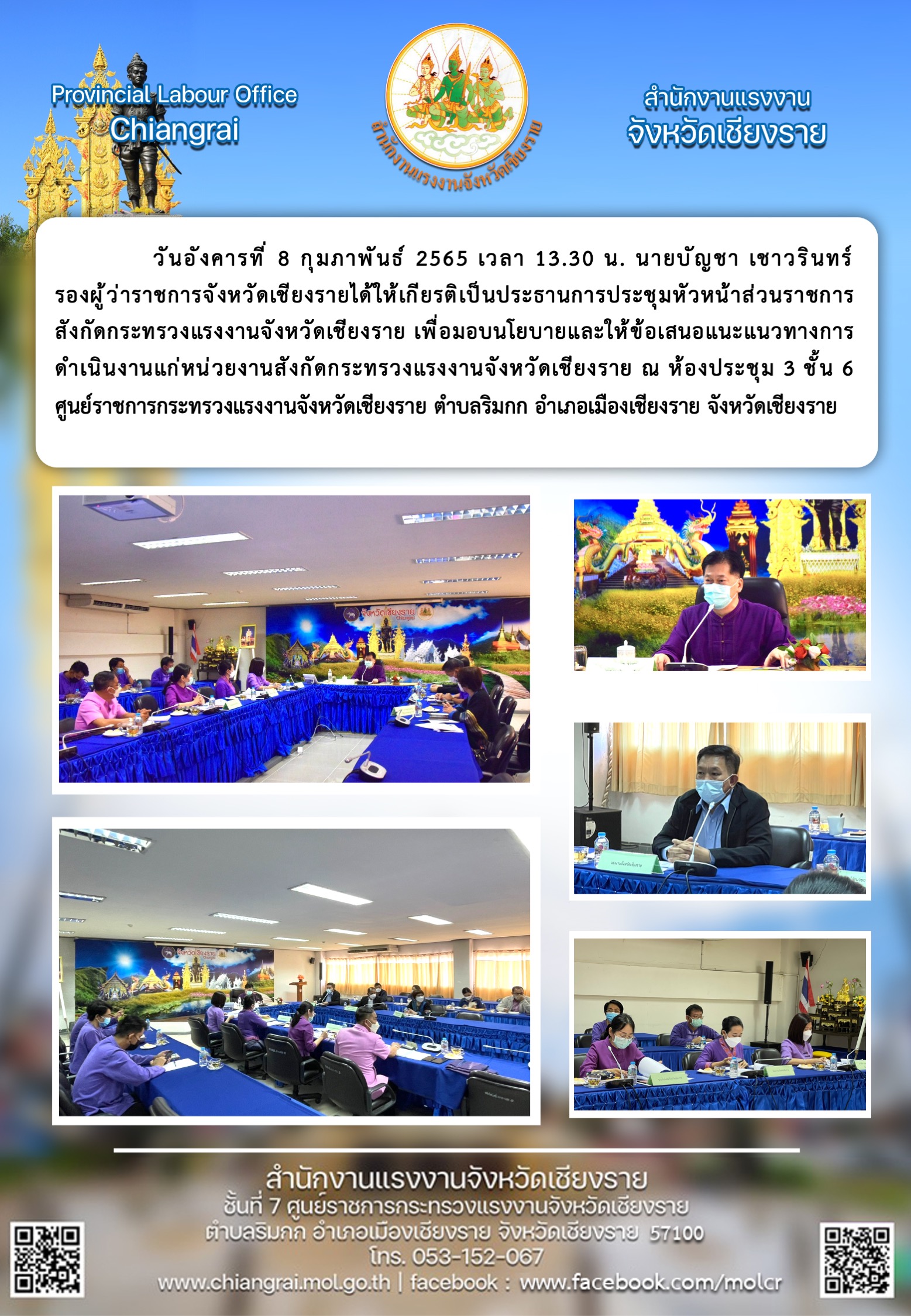 สรจ.ชร. เข้าร่วมการประชุมหัวหน้าส่วนราชการ สังกัดกระทรวงแรงงานจังหวัดเชียงราย