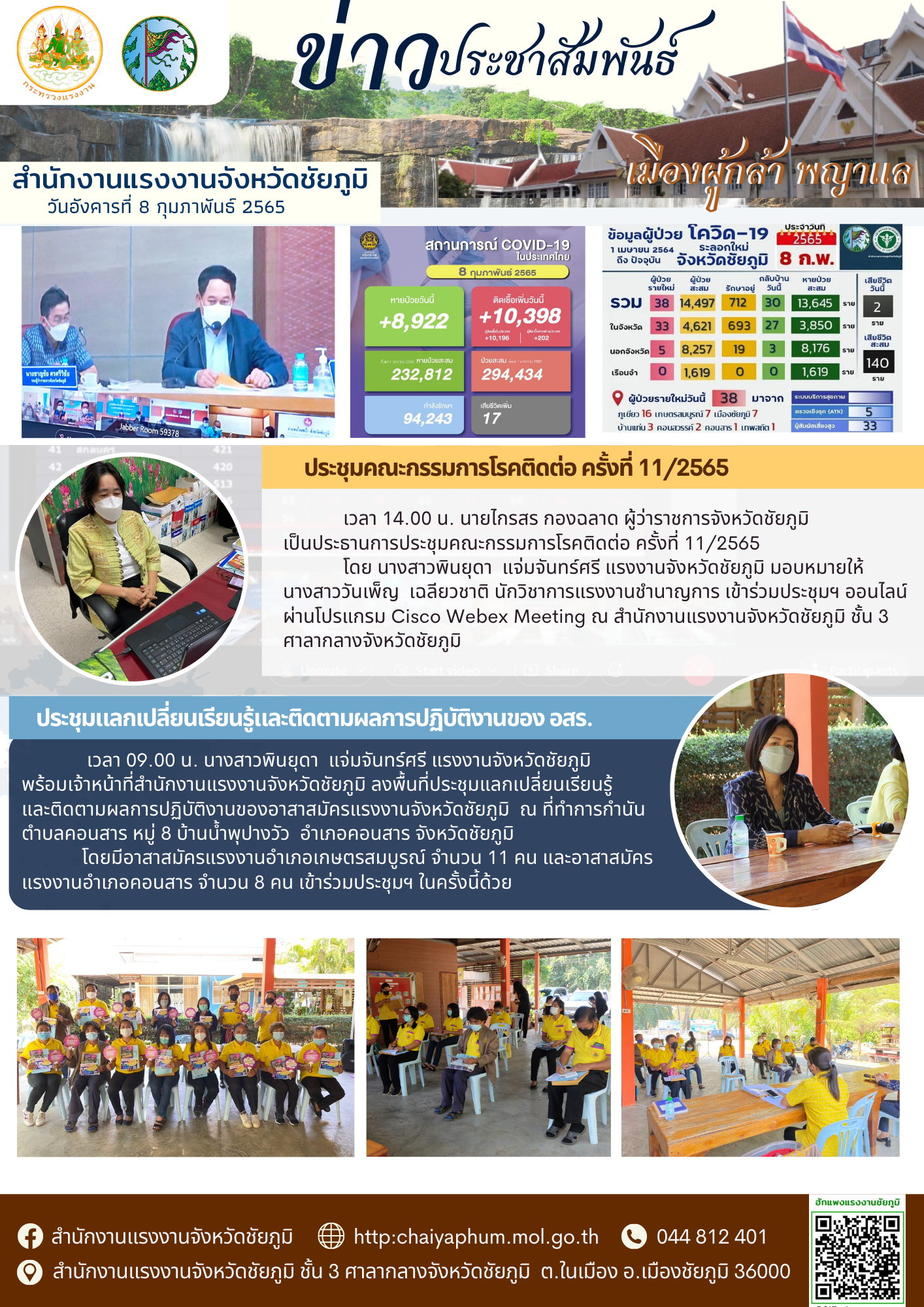 ภารกิจสำนักงานแรงงานจังหวัดชัยภูมิ ประจำวันที่ 8 กุมภาพันธ์ 2565
