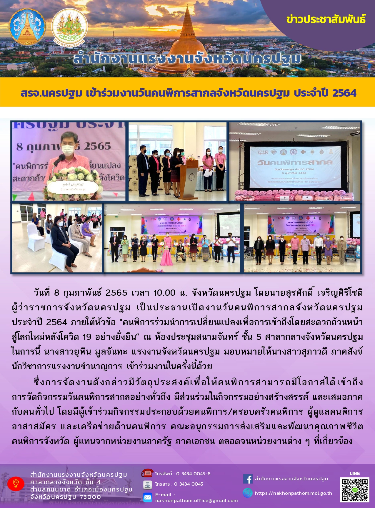 สรจ.นครปฐม เข้าร่วมงานวันคนพิการสากลจังหวัดนครปฐม ประจำปี 2564