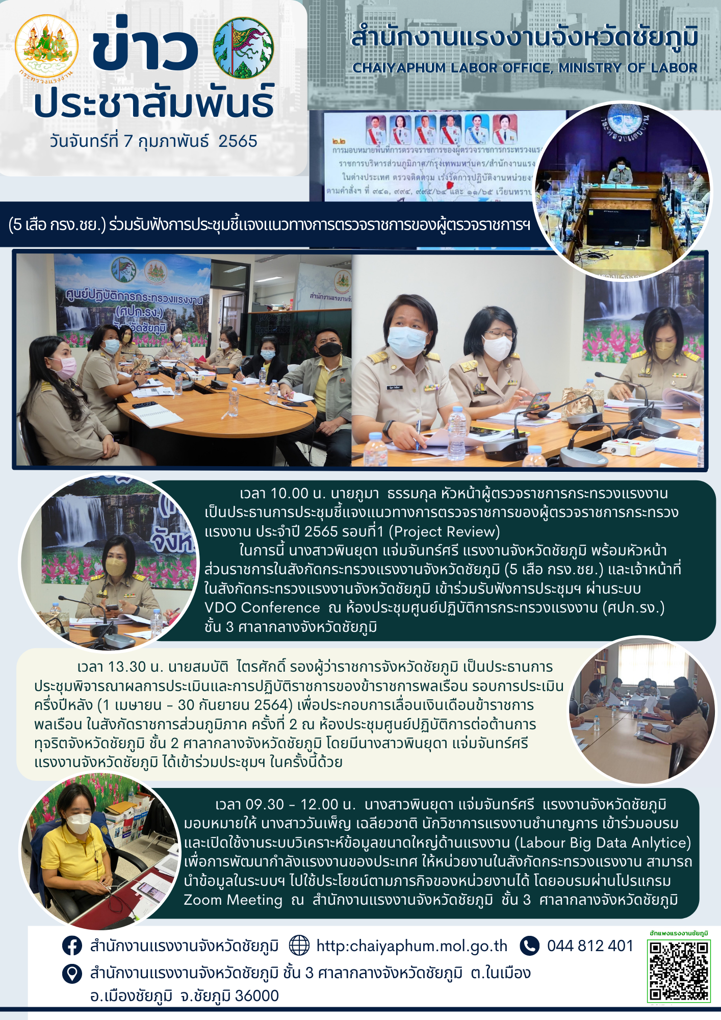 ภารกิจสำนักงานแรงงานจังหวัดชัยภูมิ ประจำวันที่ 7 กุมภาพันธ์ 2565