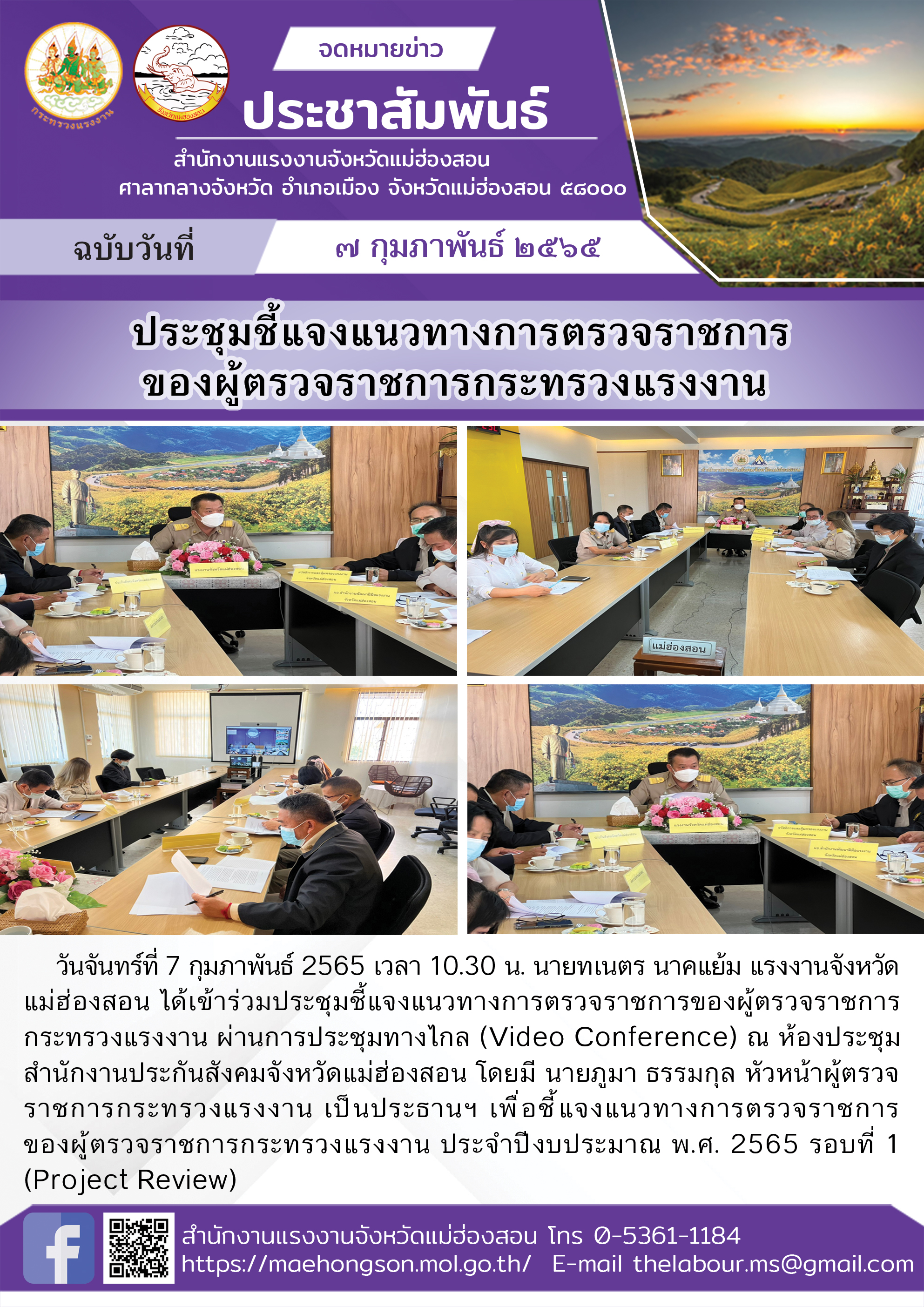 5 เสือแรงงานจังหวัดสมุทรสงคราม เข้าร่วมประชุมชี้แจงแนวทางการตรวจราชการของผู้ตรวจราชการกระทรวงแรงงาน ประจำปีงบประมาณ พ.ศ.2565