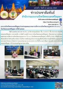 แรงงานจังหวัดพระนครศรีอยุธยาร่วมประชุมคณะกรรมการบริหารงานจังหวัดแบบบูรณาการ (ก.บ.จ.)จังหวัดพระนครศรีอยุธยา ครั้งที่ 2/2565