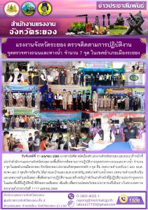 แรงงานจังหวัดระยอง ตรวจติดตามการปฏิบัติงานจุดตรวจทางถนนและทางน้ำ จำนวน 7 จุด ในเขตอำเภอเมืองระยอง