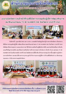 แรงงานจังหวัดตาก ส่งเจ้าหน้าที่ร่วมพิธีเปิดการประชุมเชิงปฏิบัติการพัฒนาศักยภาพสมาชิกแกนนำชมรม TO BE NUMBER ONE จังหวัดตาก ประจำปี 2565