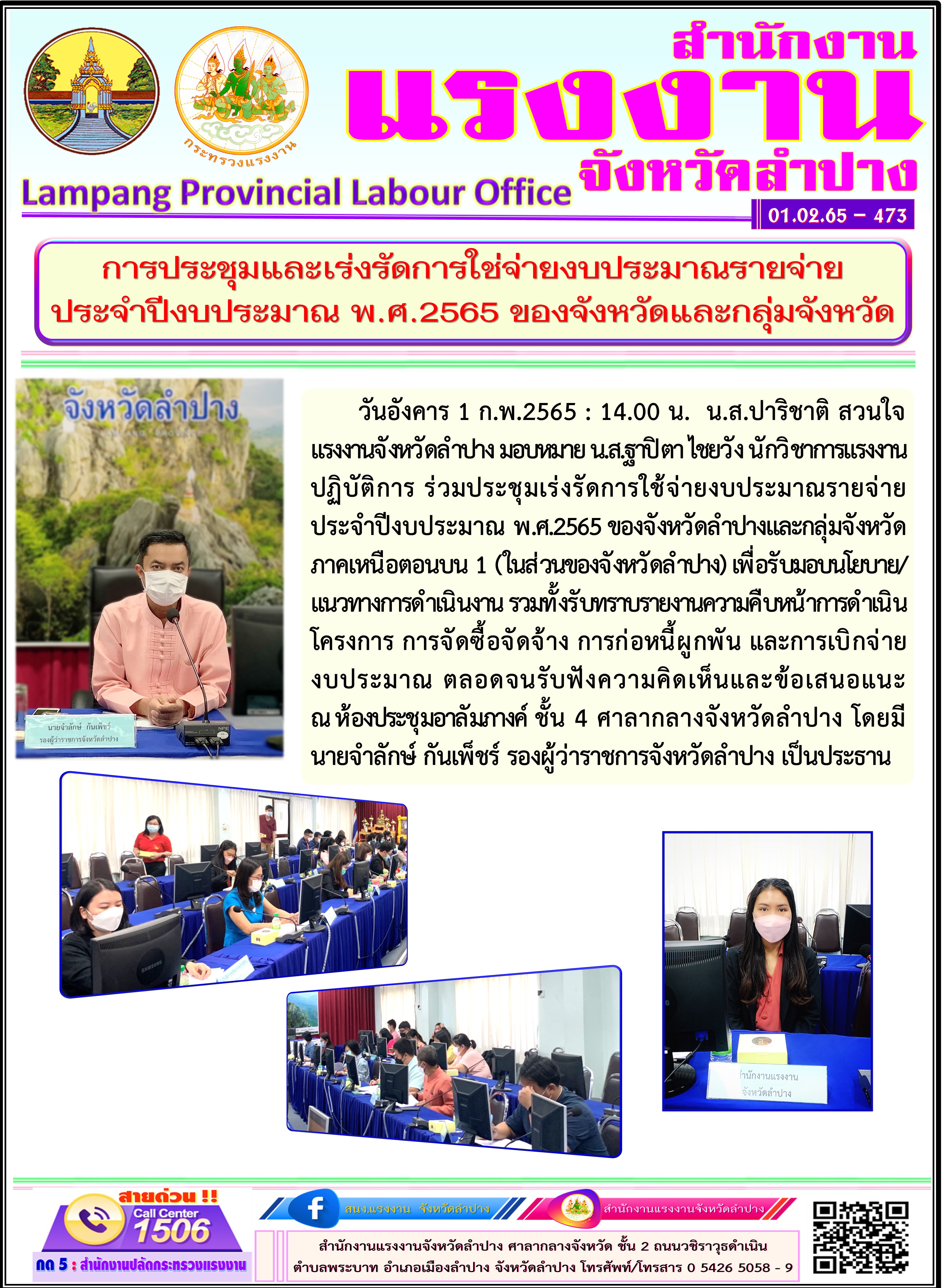 สรจ.ลำปาง ร่วมประชุมและเร่งรัดการใช่จ่ายงบประมาณรายจ่ายประจำปีงบประมาณ พ.ศ.2565 ของจังหวัดและกลุ่มจังหวัด