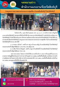 เเรงงานจังหวัดสิงห์บุรี ร่วมบูรณาการตรวจสอบสถานประกอบการกลุ่มเสี่ยงอำเภอเมืองสิงห์บุรี จังหวัดสิงห์บุรี