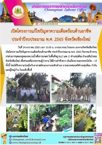 แรงงานเชียงใหม่ เปิดโครงการแก้ไขปัญหาความเดือดร้อนด้านอาชีพจังหวัดเชียงใหม่ ประจำปีงบประมาณ พ.ศ. 2565