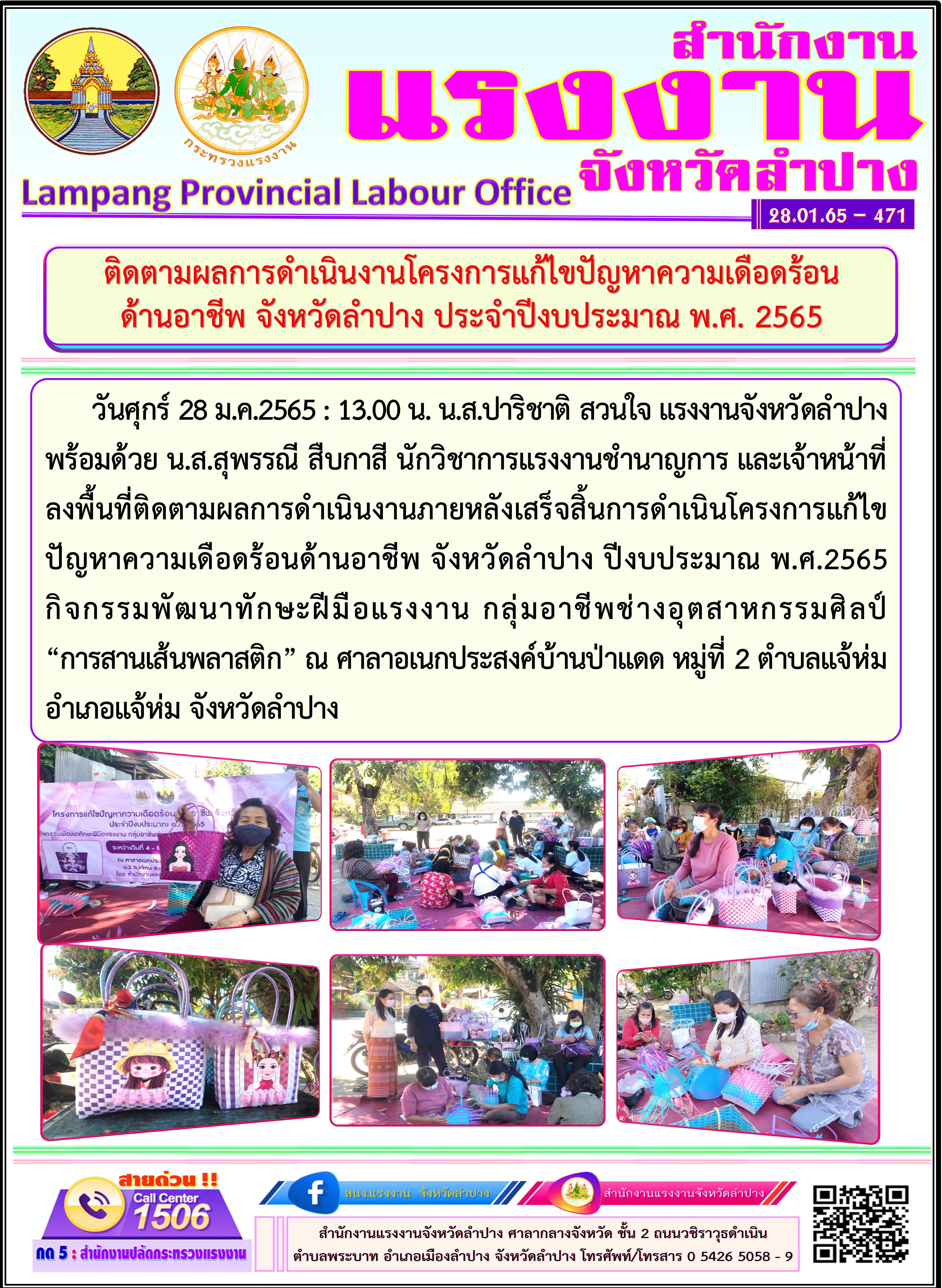 สรจ.ลำปาง ติดตามผลการดำเนินงานโครงการแก้ไขปัญหาความเดือดร้อนด้านอาชีพ จังหวัดลำปาง ประจำปีงบประมาณ พ.ศ.2565