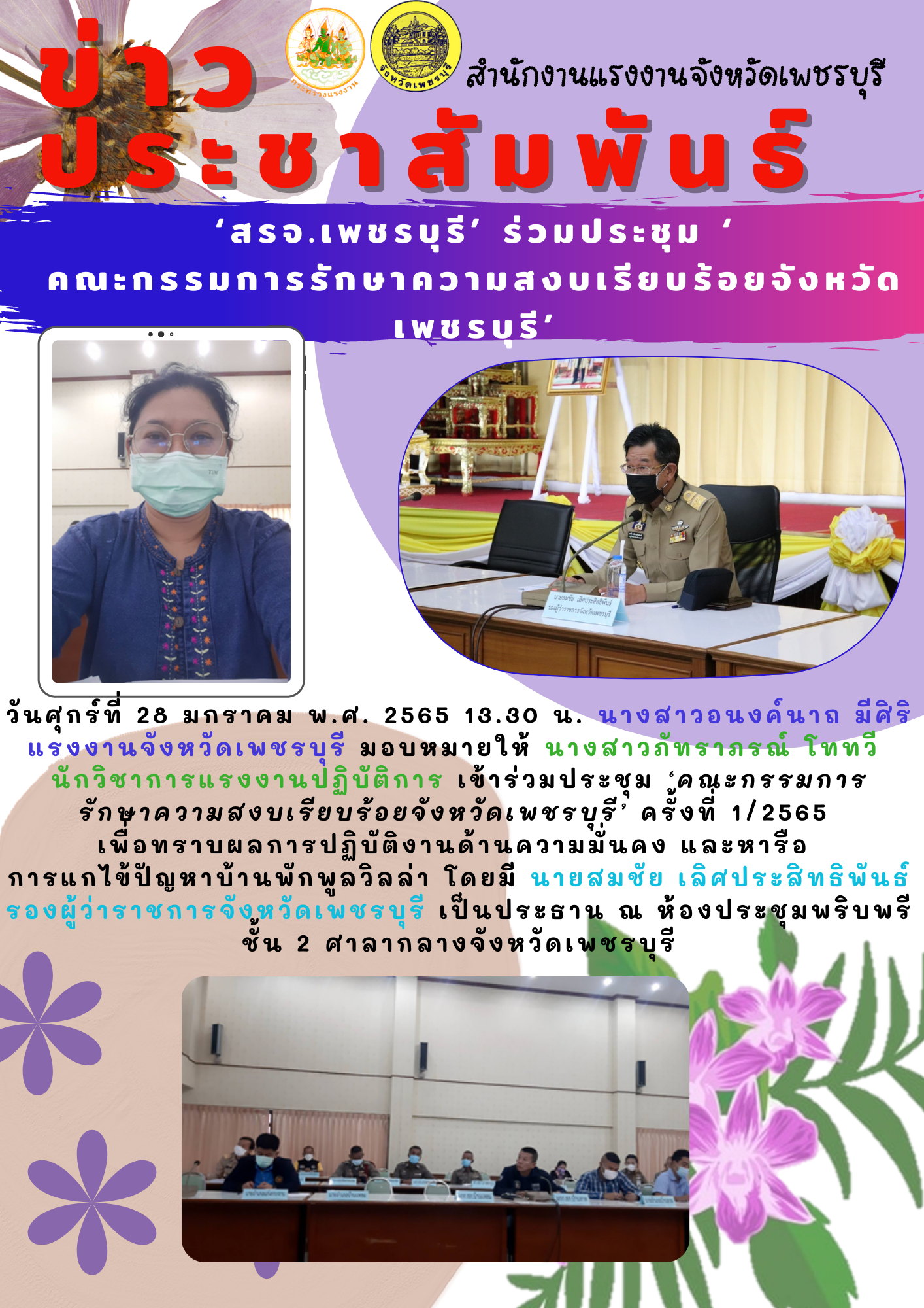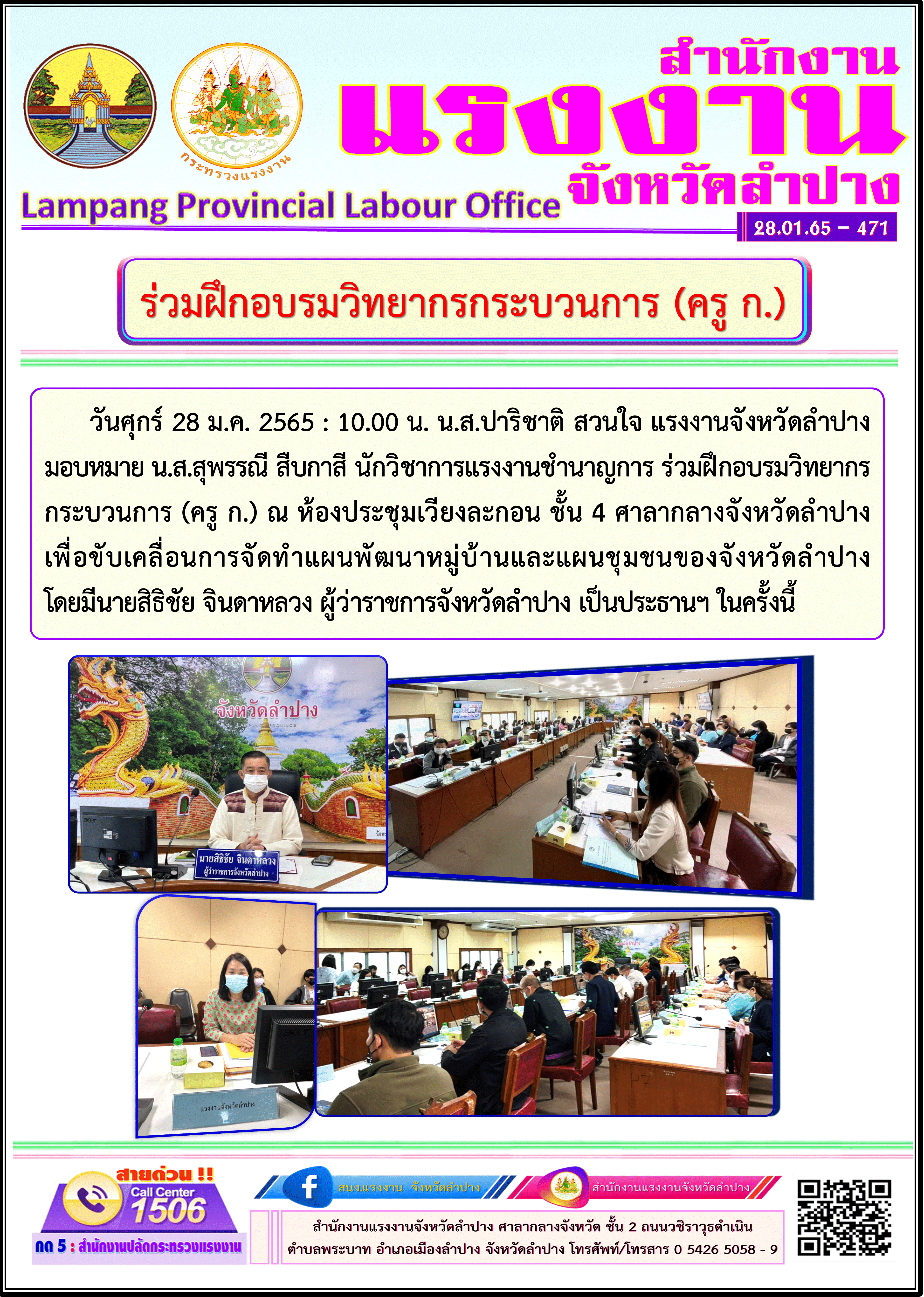 ภารกิจสำนักงานแรงงานจังหวัดนครราชสีมา ประจำวันที่ 28 มกราคม 2565