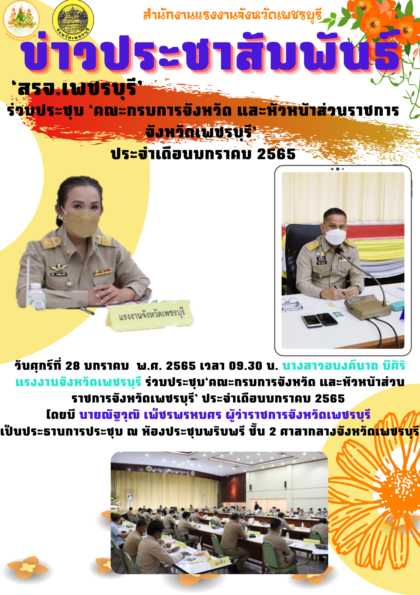 ‘สรจ.เพชรบุรี’ ร่วมประชุม ‘คณะกรมการจังหวัด และหัวหน้าส่วนราชการจังหวัดเพชรบุรี’ ประจำเดือนมกราคม 2565
