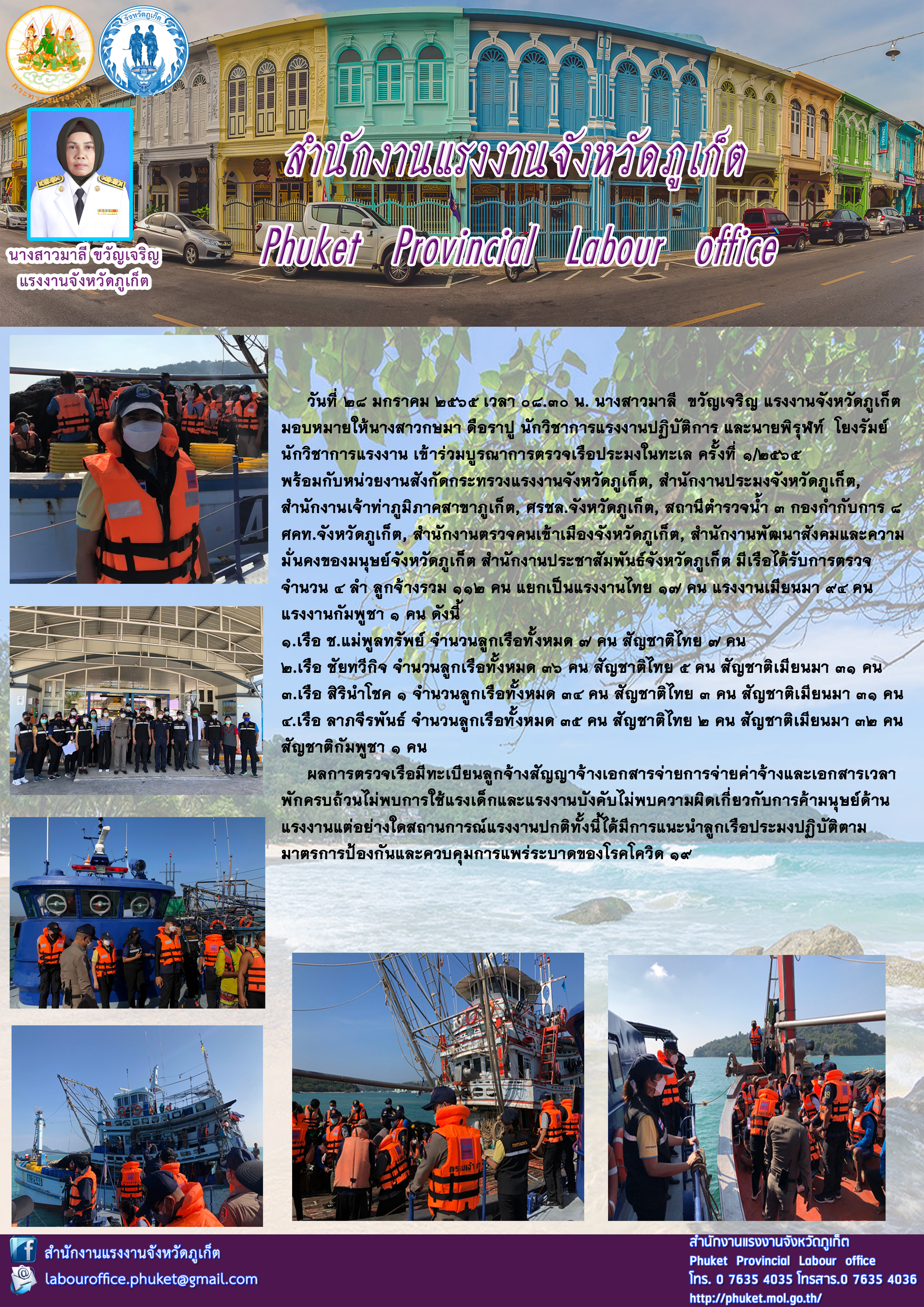 สรจ.ภูเก็ต เข้าร่วมบูรณาการตรวจเรือประมงในทะเล ครั้งที่ 1/2565พร้อมกับหน่วยงานสังกัดกระทรวงแรงงานจังหวัดภูเก็ต