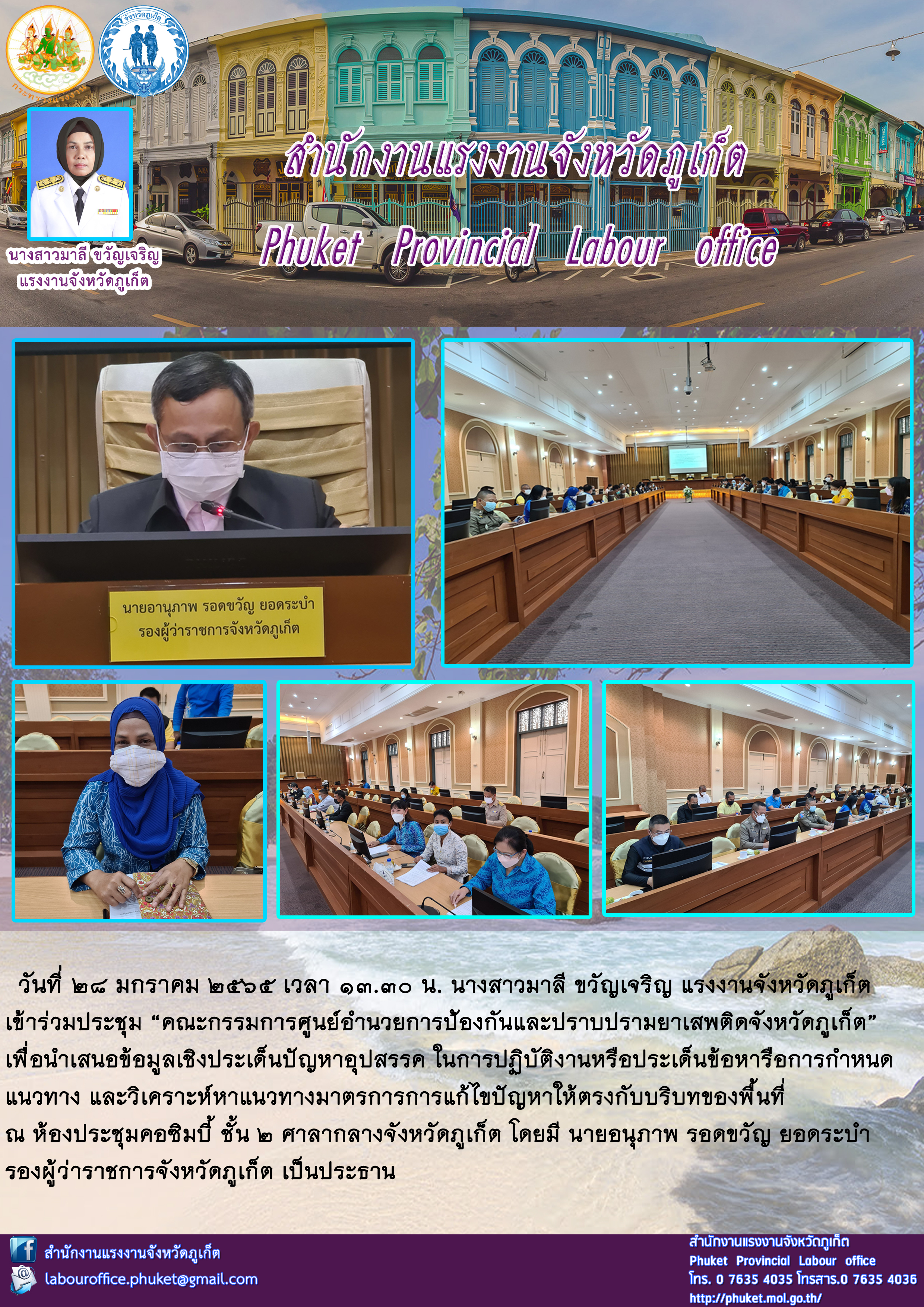 แรงงานจังหวัดภูเก็ต เข้าร่วมประชุม “คณะกรรมการศูนย์อำนวยการป้องกันและปราบปรามยาเสพติดจังหวัดภูเก็ต”