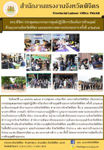 สรจ.พิจิตร ประชุมคณะกรรมการศูนย์ปฏิบัติการป้องกันการค้ามนุษย์ด้านแรงงานจังหวัดพิจิตร และออกตรวจสถานประกอบการ ครั้งที่ 4/2565