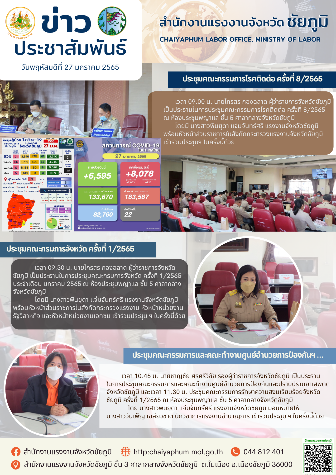 ภารกิจสำนักงานแรงงานจังหวัดชัยภูมิ ประจำวันที่ 27 มกราคม 2565