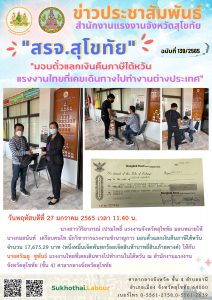 สรจ.สุโขทัย มอบตั๋วแลกเงินคืนภาษีไต้หวัน แรงงานไทยที่เคยเดินทางไปทำงานต่างประเทศ