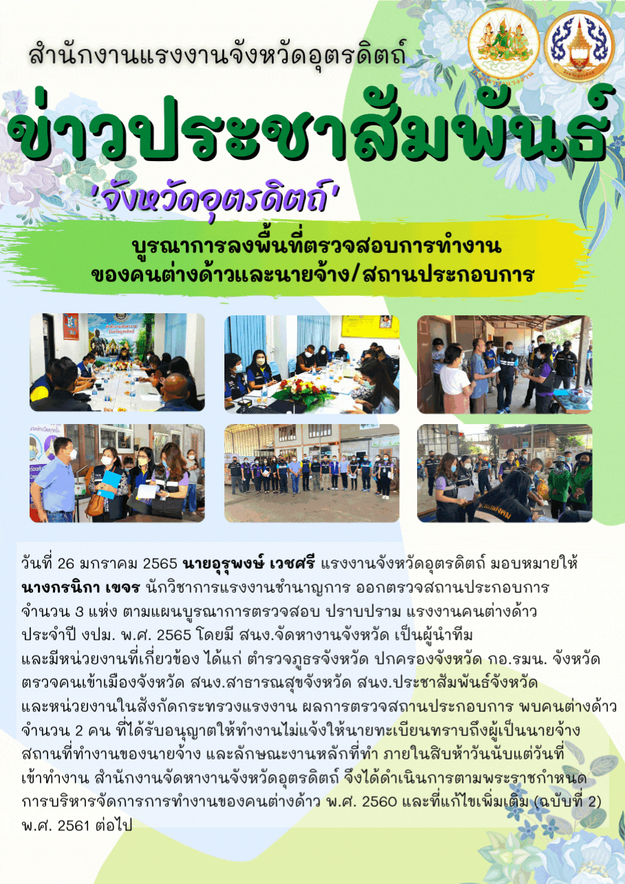 สรจ.อต. บูรณาการลงพื้นที่ตรวจสอบการทำงานของคนต่างด้าวและนายจ้าง/สถานประกอบการ
