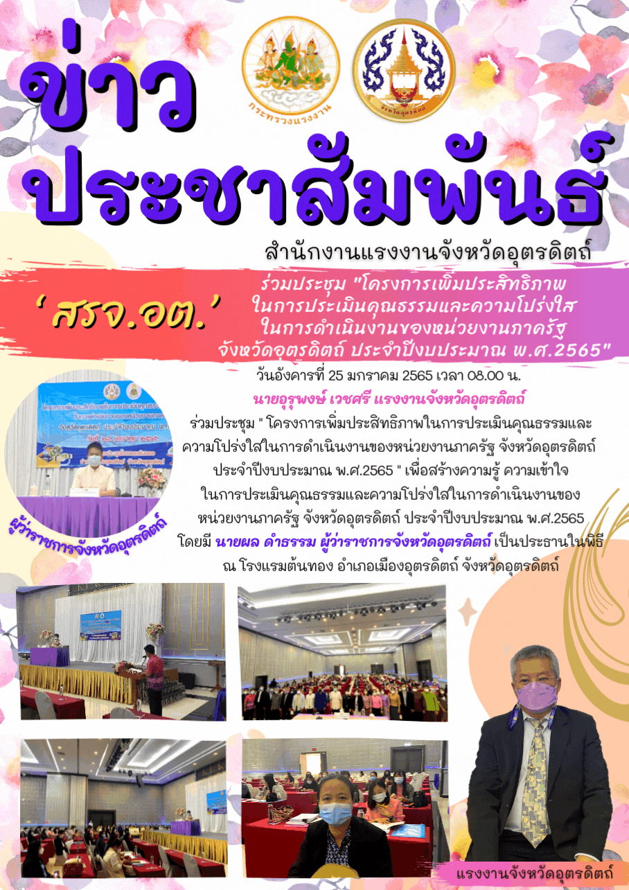 สรจ.อต. ร่วมประชุม “โครงการเพิ่มประสิทธิภาพ ในการประเมินคุณธรรมและความโปร่งใส ในการดำเนินงานของหน่วยงานภาครัฐ จังหวัดอุตรดิตถ์ ประจำปีงบประมาณ พ.ศ.2565”