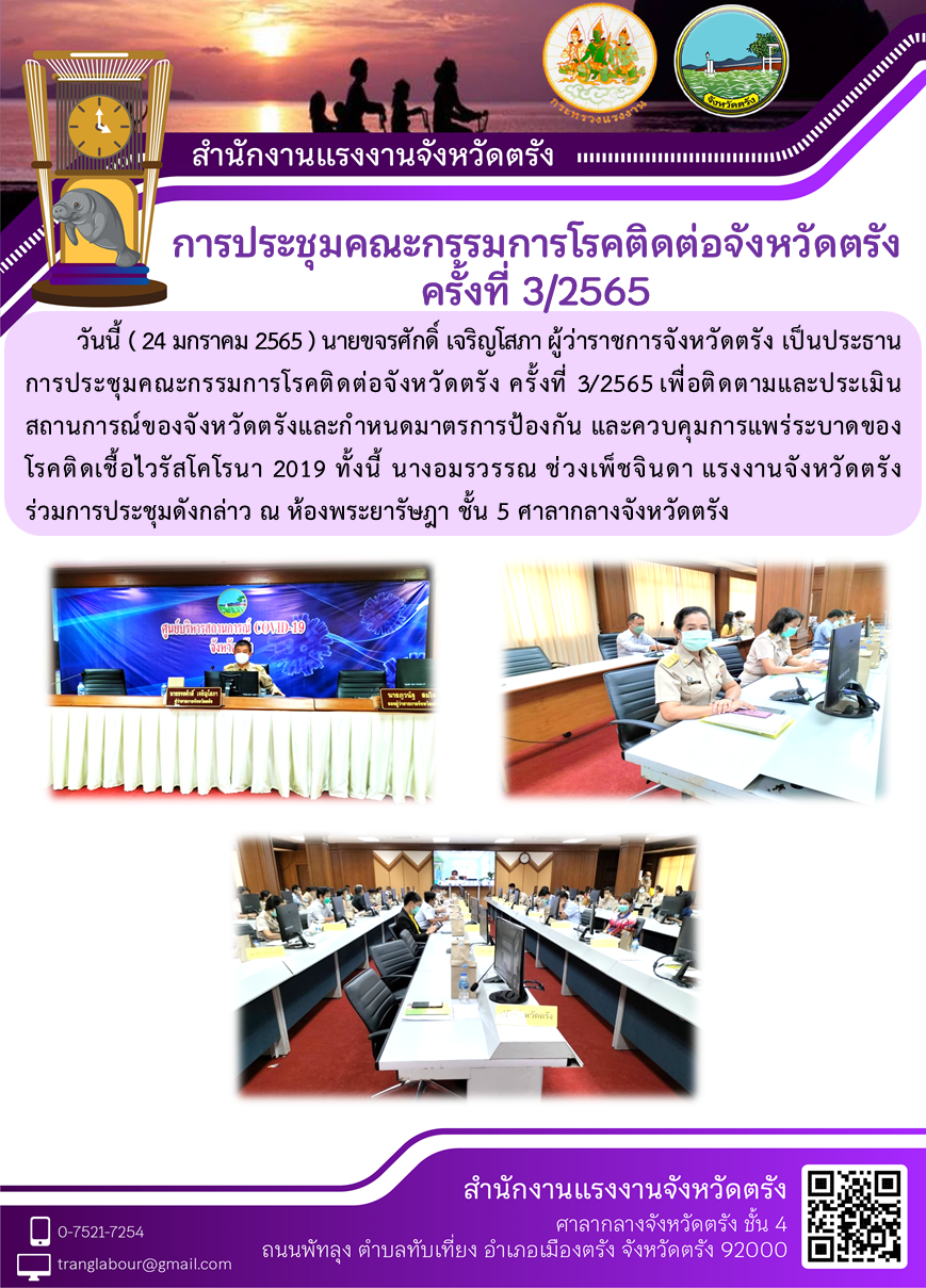 แรงงานจังหวัดตรัง ร่วมการประชุมคณะกรรมการโรคติดต่อจังหวัดตรัง ครั้งที่ 3/2565
