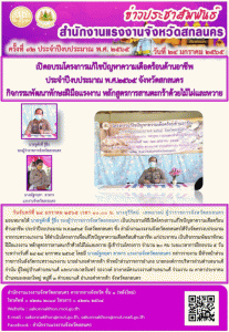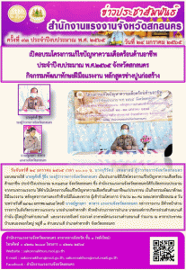 สำนักงานแรงงานจังหวัดสกลนคร ปิดอบรมโครงการแก้ไขปัญหาความเดือดร้อนด้านอาชีพ ประจำปีงบประมาณ พ.ศ. 2565 จังหวัดสกลนคร กิจกรรมพัฒนาฝีมือแรงงาน หลักสูตรช่างปูนก่อสร้าง