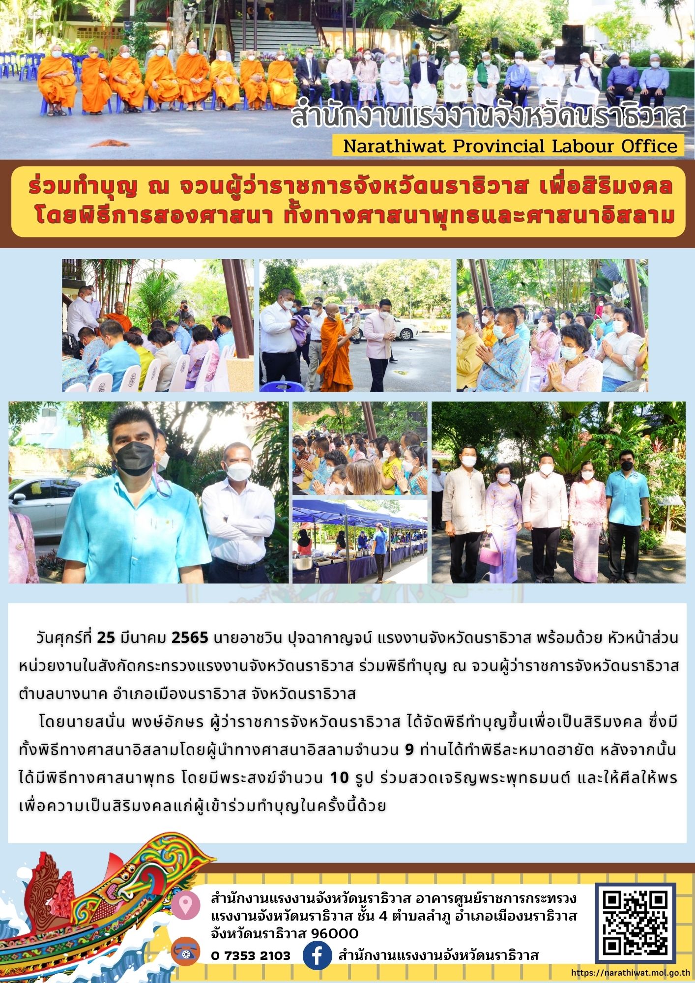 สรจ.นราธิวาส ร่วมทำบุญ ณ จวนผู้ว่าราชการจังหวัดนราธิวาส เพื่อสิริมงคล โดยพิธีการสองศาสนา ทั้งทางศาสนาพุทธและศาสนาอิสลาม
