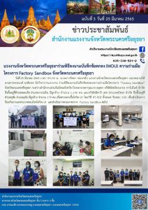 แรงงานจังหวัดพระนครศรีอยุธยาร่วมพิธีลงนามบันทึกข้อตกลง (MOU) ความร่วมมือโครงการ Factory Sandbox จังหวัดพระนครศรีอยุธยา