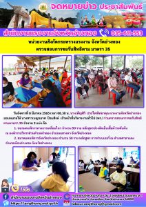 หน่วยงานสังกัดกระทรวงแรงงาน จังหวัดอ่างทอง ตรวจสอบการขอรับสิทธิตาม มาตรา 35