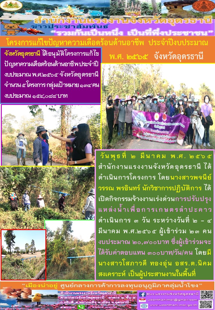 โครงการแก้ไขปัญหาความเดือดร้อนด้านอาชีพ ประจำปีงบประมาณ พ.ศ. 2565 จังหวัดอุดรธานี