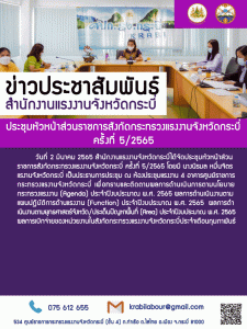 ประชุมหัวหน้าส่วนราชการสังกัดกระทรวงแรงงานจังหวัดกระบี่ ครั้งที่ 5/2565