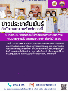 5 เสือแรงงานจังหวัดกระบี่เข้าร่วมพิธีถวายราชสักการะ “วันมาตรฐานฝีมือแรงงานแห่งชาติ” ประจำปี 2565