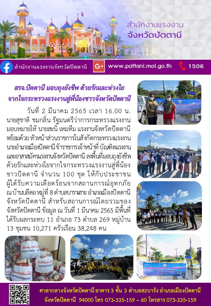สรจ.ปัตตานี มอบถุงยังชีพ ด้วยรักและห่วงใยจากใจกระทรวงแรงงานสู่พี่น้องชาวจังหวัดปัตตานี