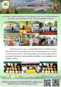 แรงงานจังหวัดตาก ร่วมพิธีถวายเครื่องราชสักการะ พระบาทสมเด็จพระบรมชนกาธิเบศร มหาภูมิพลอดุลยเดชมหาราช บรมนาถบพิตร “พระบิดาแห่งมาตรฐานการช่างไทย” เนื่องในวันมาตรฐานฝีมือแรงงานแห่งชาติ